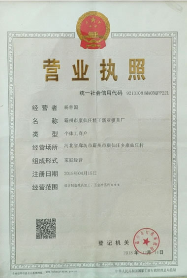霸州市康仙莊精工新亞模具廠位于北京、天津、保定核心的霸州市,地理位置優(yōu)越,具有區(qū)位優(yōu)勢(shì),市里京九鐵路、津保高速、106國(guó)道、112國(guó)道縱橫交叉,交通運(yùn)輸通